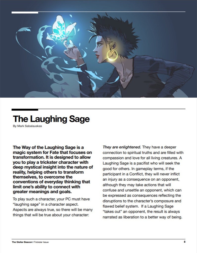The Laughing Sage Play as a mystical trickster who help others to change, overcoming convention to be liberated to a better way of being.